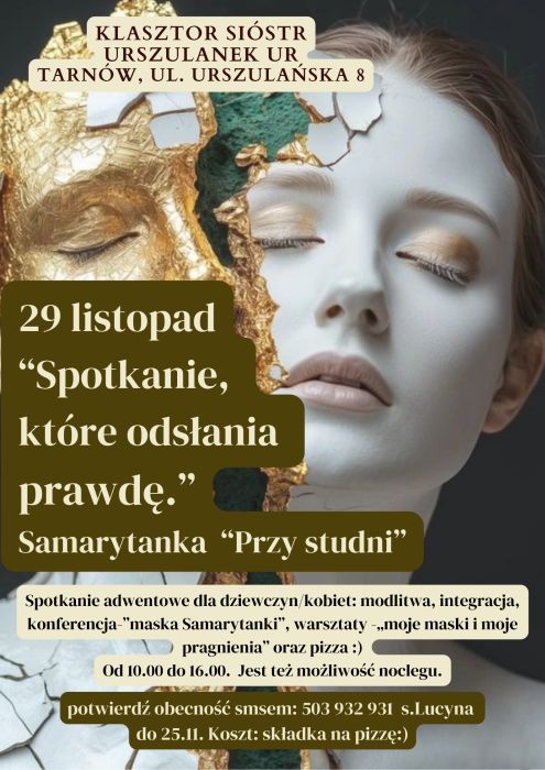 Zapraszamy na adwentowe spotkanie z "Samarytanką", które odbędzie się w sobotę, 29 listopada 2025 r. (z możliwością noclegu do niedzieli). Rozpoczynamy o godz. 10:00, a zakończenie planowane jest ok. 16:00.