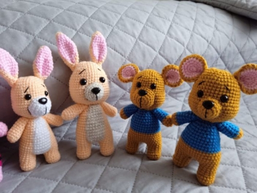 Nie są to zwykłe pluszaki. Siostra tworzy prawdziwe kolekcje – od Kubusia Puchatka, przez bohaterów Psiego Patrolu, aż po całą gromadkę lalek, kotków, koników i baranków „made in Poland” (z dumą oznaczonych uśmiechem i kawałkiem włóczki). Do tego breloki, drobiazgi, zabawki – a zamówienia mnożą się szybciej niż oczka w szydełkowym łańcuszku.