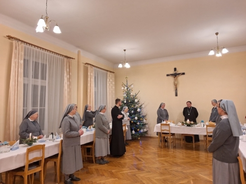 Podczas homilii ks. Kardynał nawiązał do czytań i ewangelii z dnia. Podkreślił, że tak jak w przypadku paralityka, Jezus zawsze chce docierać do najgłębszych miejsc ludzkiego serca, uzdrawiając rany, które często pozostają niewidoczne dla innych. Zachęcał nas do trwania w ufności i otwartości na działanie Bożej łaski, szczególnie w codziennej posłudze wychowawczej i apostolskiej. Słowa Księdza Kardynała wybrzmiały w naszych sercach jako źródło umocnienia oraz zaproszenie do jeszcze głębszego przeżywania charyzmatu św. Anieli Merici. Po zakończonej liturgii udaliśmy się na kolację do klasztornego refektarza. Jako że trwała w naszej wspólnocie wizytacja kanoniczna, była z nami także s. Prowincjalna Iwona Skorupa. Czas przy stole stał się okazją do swobodnej rozmowy, dzielenia się doświadczeniem wiary oraz radością, tym bardziej, że Ks. Kardynał wiele razy bywał już w naszym domu, a jako profesor UPJPII pamiętał też wiele sióstr, z którymi przez lata współpracował. Cieszymy się, że już u początków nowej posługi mogłyśmy zapewnić Pasterza naszej archidiecezji o modlitwie i gotowości do współpracy. Mamy nadzieję na kolejne spotkania.
