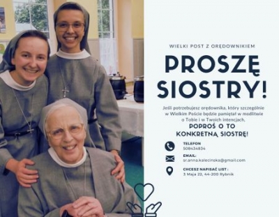 ...zaproszenie do projektu wielkopostnego, w którym możemy poprosić o 40-dniowe wstawiennictwo modlitewne jednej z naszych Sióstr. Jeśli masz jakieś intencje wypowiedziane czy niewypowiedziane albo zwyczajnie potrzebujesz, żeby w okresie Wielkiego Postu ktoś o Tobie pamiętał, wspierał Cię modlitwą - zgłoś się!