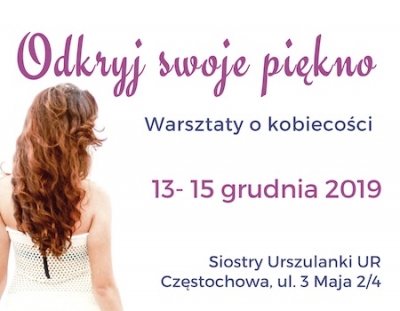 Zapraszamy na warsztaty i duchowy wizaż z zakresu piękna i kobiecości, które odbędą się w dniach 13-15 grudnia 2019 w Częstochowie.