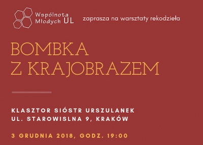 Wspólnota młodych "UL" zaprasza na warsztaty rękodzieła "Bombka z krajobrazem", podczas których będzie można własnoręcznie wykonać świąteczną bombkę.