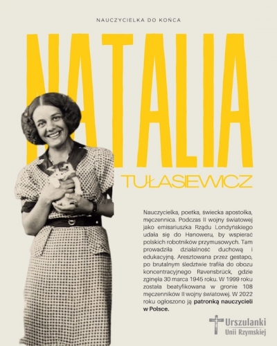 Dziś błogosławiona Natalia Tułasiewicz jest patronką nauczycieli – świadectwem, że prawdziwy pedagog nie tylko przekazuje wiedzę, ale przede wszystkim formuje serca i umysły swoich uczniów. Pozostała nauczycielką do końca – w szkole, w gronie przyjaciół, w konspiracji, w obozie. Jej życie i śmierć przypominają nam, że nauczyciel to nie tylko zawód, ale powołanie, które nie kończy się w szkolnych murach, ale trwa w każdym miejscu, gdzie brakuje prawdy, wiary i nadziei. Natalia Tułasiewicz odkryła piękno tego powołania przez zawierzenie siebie prawdziwej mądrości, pochodzącej od Tego, któremu służyła aż po śmierć – Jezusa Chrystusa.