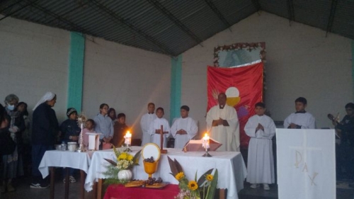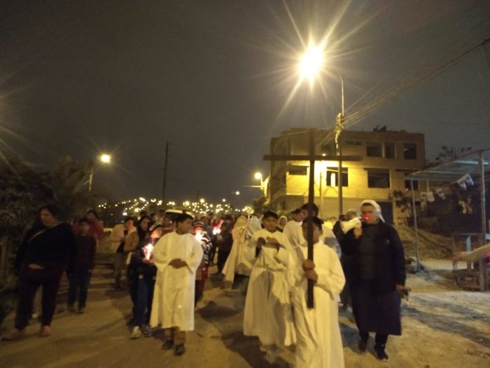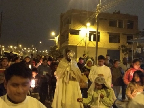 Uroczystość Bożego Ciała w Peru, jak w większości krajów Ameryki Południowej, obchodzona jest w niedzielę. Pierwsza naiedziela czerwca była niezwykłym dniem dla naszej misji w Pachacutek, ponieważ po raz pierwszy z naszej kaplicy Matki Bożej z Guadelupe wyruszyła procesja Bożego Ciała. W skromnej, pozbawionej prądu, ale pięknie ozdobionej i rozświetlonej lampionami kaplicy, mogliśmy adorować TEGO, który, będąc z nami pod postacią chleba, jest naszym prawdziwym ŚWIATŁEM.