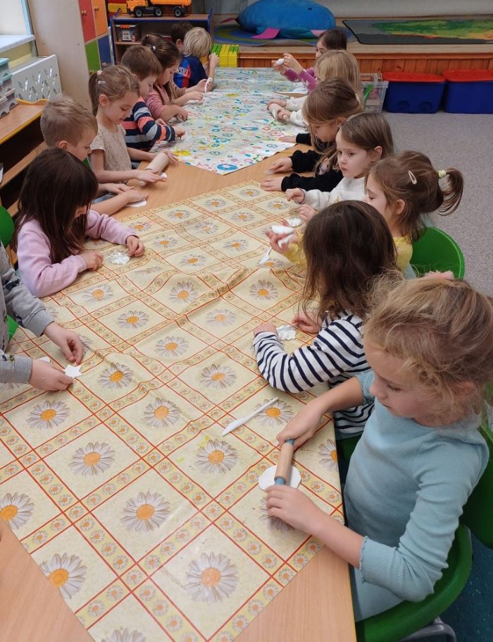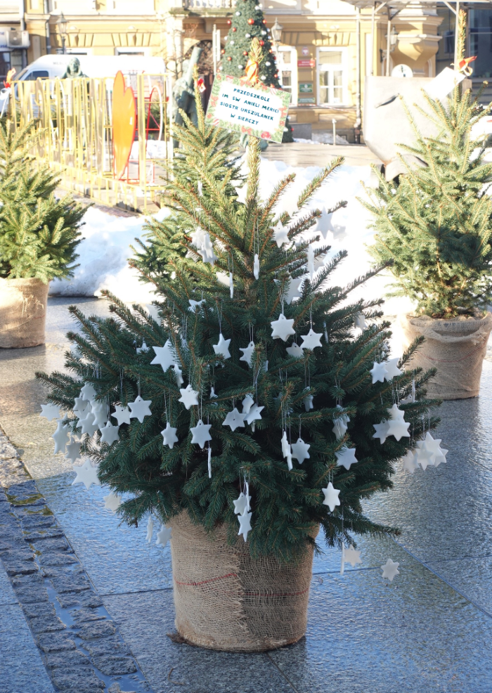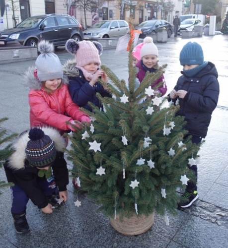 Tym razem nasze świąteczne drzewko pokryło się białymi gwiazdkami wykonanymi własnoręcznie przez przedszkolaków. Do tworzenia gwiazdkowych ozdóbek została wykorzystana masa porcelanowa, którą wytworzyć – jak się przekonaliśmy – nie było wcale łatwo. Ale udało się! Gwiazdki cieszą teraz oczy Wieliczan, turystów, a także osób odwiedzających nasze przedszkole.
