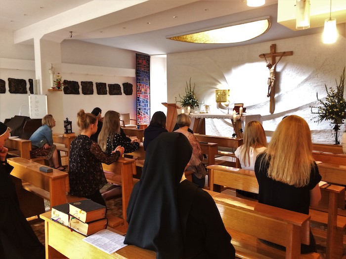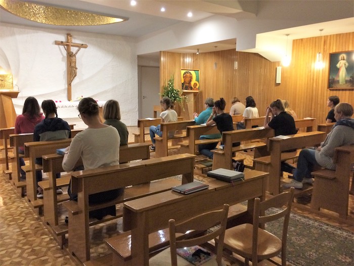 Piątkowy wieczór i sobotnie przedpołudnie było czasem ciszy i milczenia. Dla niektórych osób było to spore wyzwanie. Dziewczyny jednak chętnie skorzystały z tej propozycji i z wielką hojnością serca weszły w adorację i medytację - modlitwę osobistą.