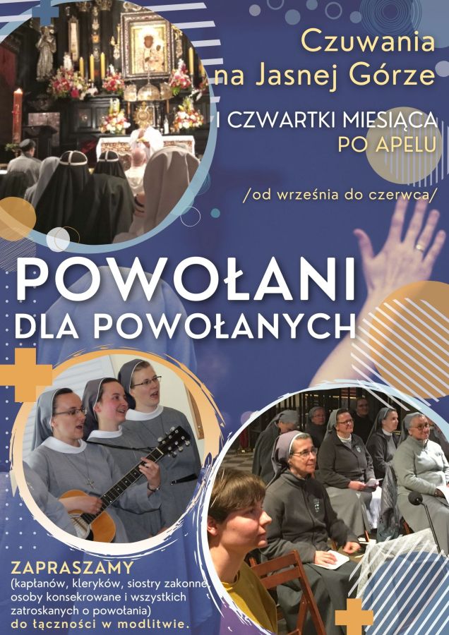 Zapraszamy na czuwania modlitewne, w intencji powołanych i o nowe powołania! Spotkania modlitewne odbywają się w Pierwsze Czwartki miesiąca, na Jasnej Górze, w kaplicy Matki Bożej, po Apelu Jasnogórskim.