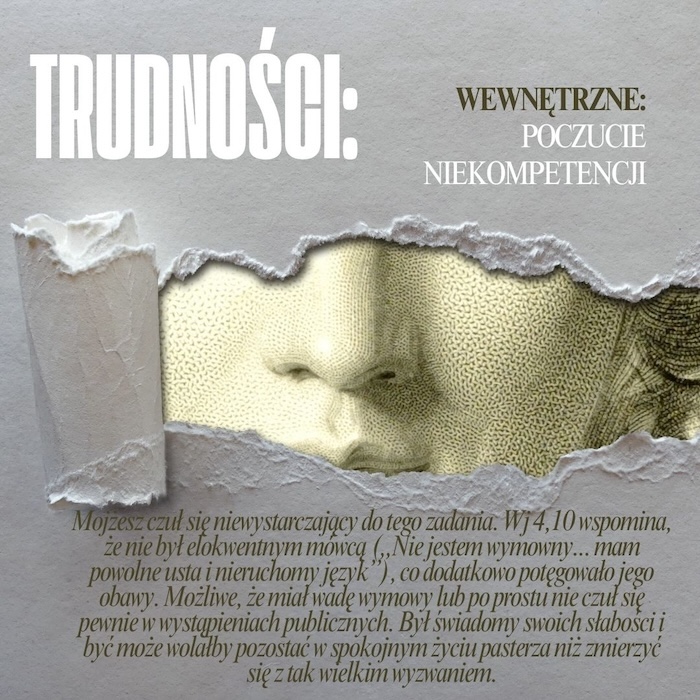 Mojżesz czuł się niekompetentny do misji, którą powierzył mu Bóg. Jakie są Twoje największe obawy wobec przyszłości? Czy strach przed własnymi słabościami powstrzymuje Cię przed podjęciem ważnych kroków?