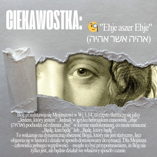 Bóg objawił się Mojżeszowi jako „Ehje aszer Ehje” – „Będę, który będę”, czyli Ten, który działa w historii. Czy doświadczyłeś/aś w swoim życiu momentów, w których czułeś/aś, że Bóg Cię prowadzi? Co by się zmieniło, gdybyś patrzył/a na przyszłość z przekonaniem, że Bóg będzie z Tobą?
