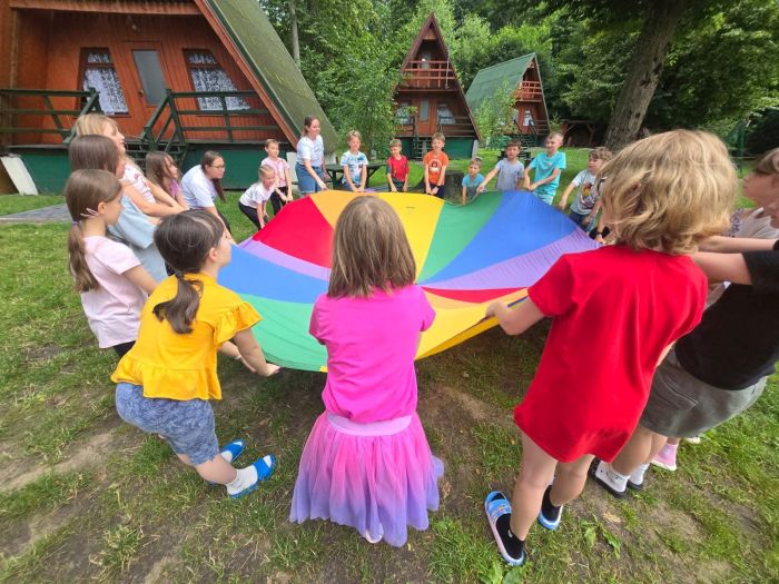 Na pierwszy ogień poszły nasze najmłodsze gwiazdy – dzieci z klas 1-3 ze Szkoły Podstawowej Sióstr Urszulanek w Poznaniu. Miejscem akcji był Lubasz – miejsce pełne zieleni, wody, słońca i uśmiechów. Czuwali tam nad dziećmi niezastąpieni, urszulańscy nauczyciele i s. Irena, która z anielską cierpliwością i humorem prowadziła dzień za dniem. Były zabawy, śpiewy, spacery, zajęcia warsztatowe, modlitwa i – rzecz jasna – ogniska i wieczorne dyskoteki (z DJ-em na poziomie klas 3!).