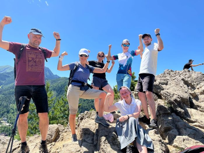 Nieco wyżej – dosłownie i w przenośni – znalazła się młodzież licealna, zgromadzona w Zębie pod Zakopanem, która zdobywała szczyty w Tatrach. Trzy urszulańskie licea (z Poznania, Wrocławia i Rybnika) połączyły siły, by wspólnie przeżyć przygodę w duchu SERVIAM. Opiekę duchowo-turystyczną roztaczali nad nimi również nasi drodzy nauczyciele z Poznania i siostry: Klara, Anna i Monika – zgrany, niezawodny i uzupełniający się tercet. Pogoda? Kapryśna. Ale gdy chmury przykrywały Tatry, nasi wychowawcy rozkładali swój magiczny wachlarz warsztatów – od kreatywnych, przez sportowe, aż po te z przymrużeniem oka.