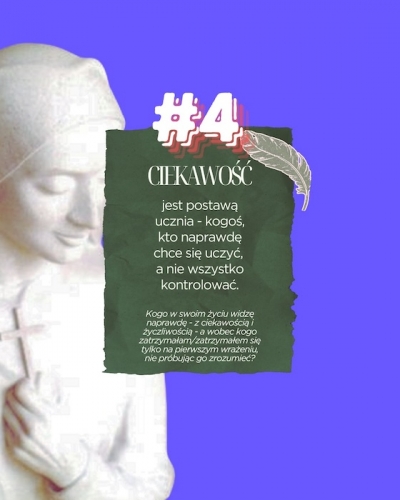 W świętej Anieli była obecna głęboka ciekawość człowieka i działania Boga. Nie była to ciekawość powierzchowna ani ciekawskość, która chce wiedzieć więcej, by oceniać lub porównywać. Było to uważne zainteresowanie - pragnienie rozumienia tego, co dzieje się w sercu drugiego, i rozeznawania, jak Bóg prowadzi go jego własną drogą. Aniela wiedziała, że nie da się towarzyszyć komuś naprawdę, jeśli nie jest się gotowym zatrzymać, zapytać i słuchać.