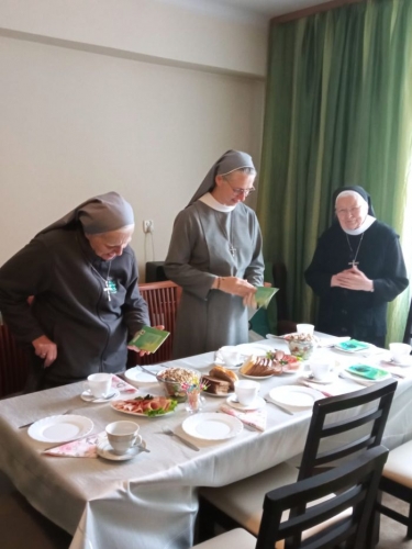 Gdy przybyłyśmy na miejsce, Siostry wprowadziły nas do kaplicy mającej rozmiary zwykłego pokoju, ale starannie przyozdobionego, z wyraźnymi akcentami urszulańskimi. Nastąpiła półgodzinna wspólna adoracja, nieszpory, po których Siostry odnowiły swoje śluby, bo dzisiejsza uroczystość jest przecież także ich świętem patronalnym.