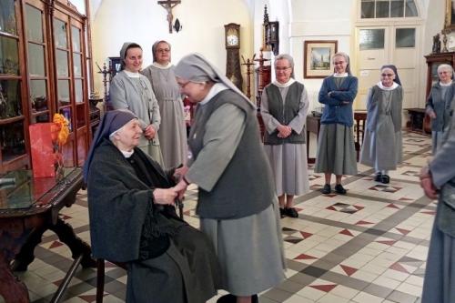 27 października 2024 wspólnota wrocławska z radością i wdzięcznością świętowała niecodzienny jubileusz – 70. rocznicę ślubów zakonnych s. Rafaeli Husson. Dla całej wspólnoty była to okazja dziękczynienia Bogu za życie i urszulańskie powołanie s. Rafaeli, za bogate owoce jej pracy pedagogicznej. Był to zarazem dzień pożegnania z Siostrą, która wyjeżdża do infirmerii w Pokrzywnie.