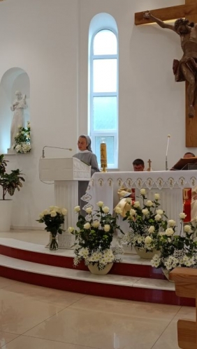 Pierwsze śluby złożyłam w Czerniowcach, wieczyste w Iwano-Frankiwsku. Prawie cały juniorat spędziłam w Kijowie, po ślubach wieczystych też tam wróciłam, a obecnie (już od roku) jestem tu po raz trzeci. Pracujemy w parafii Chrystusa Króla (oo. Pallotyni), i właśnie tu odbyła się uroczystość jubileuszowa.