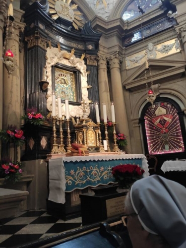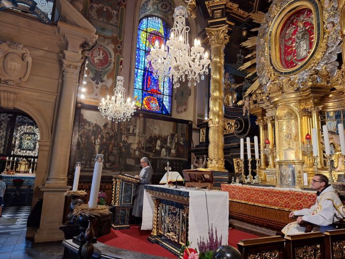 Nasze pielgrzymowanie rozpoczęłyśmy już w drodze modlitwą różańcową, polecając w niej wszystkie powierzone nam osoby i sprawy Matce Bożej. W sanktuarium przywitał nas o. Romuald Kośla OFM, który celebrował Mszę św. z prośbą o łaski jubileuszowe nas wszystkich. Warto przypomnieć, że wspólnota krakowska przeżywa właśnie prawdziwy jubileuszowy wysyp, jako że świętujemy 150 lat obecności urszulanek w Krakowie, 30 lat od reaktywacji naszej szkoły i 35 lat pracy przedszkola! Warto dodać, iż kilka sióstr przeżywa także swoje zakonne jubileusze. Ileż okazji do dziękczynienia! I cóż za kaskada łask jubileuszowych staje się naszym udziałem!