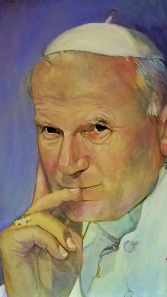 Pragniemy także podzielić się radością, że dostałyśmy obraz z wizerunkiem św. Jana Pawła II, namalowany przez córkę pani Elżbiety Truszkowskiej. Pani Elżbieta jest nauczycielką łaciny w VI LO, w którym pracuje nasza siostra przełożona, Anna Kawa.