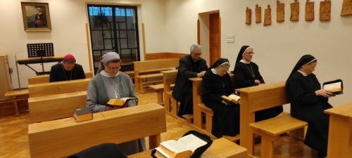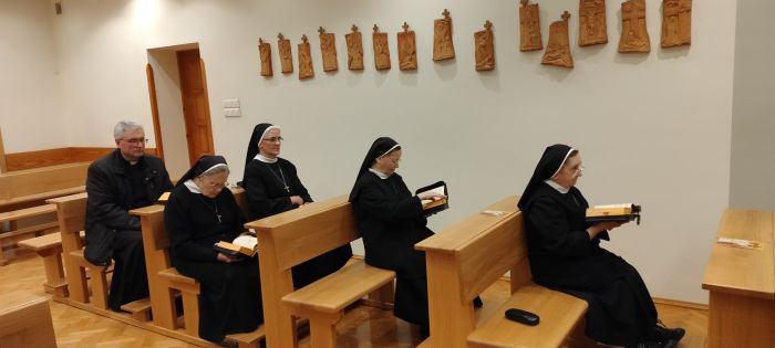 Najpierw w kaplicy odmówiliśmy Godzinę czytań, a następnie ksiądz biskup powiedział do nas kilka dobrych słów. Wspomniał też o swoich pierwszych krokach w kapłaństwie, które stawiał posługując jako neoprezbiter w orłowskiej parafii w 2001 roku. Biskup Piotr znany jest naszej wspólnocie, bo w poprzednich latach głosił nam konferencje biblijne.