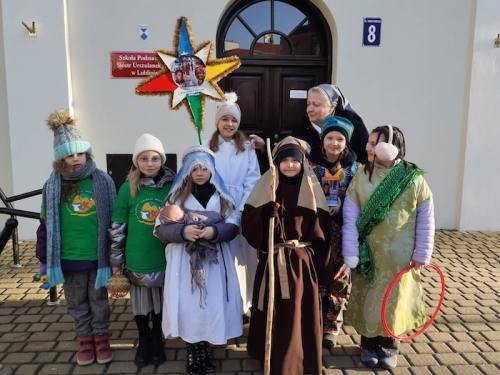 Grupy kolędnicze tworzą dzieci w strojach Maryi, Józefa, pastuszków, aniołów… Pierwsza grupa dzieci z naszej szkoły w Lublinie odwiedziła już niektóre rodziny w tym mieście. Towarzyszyła im katechetka, s. Urszula Kupczyk. Siostra stara się rozbudzać u dzieci pasję dla misji, której przykład daje swoim życiem.
