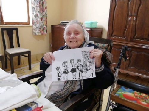 U nas są teraz wakacje. Wczoraj obchodziliśmy 100. urodziny siostry Pii, która pochodzi z Niemiec. Celebrujemy je już po raz drugi – jak na taką okoliczność przystało - bo wcześniej obchodziłyśmy je ze szkołą, która jubileusz Siostry świętowała razem z zakończeniem roku szkolnego. S. Pia była nauczycielką sztuki, więc do zdjęć z tego wydarzenia dołączam też zdjęcia wykonanych przez nią rysunków.