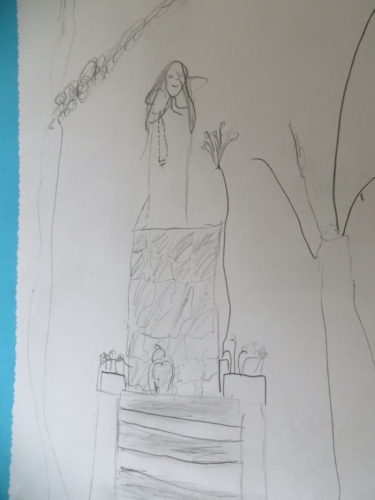 W ramach realizacji projektu poszerzyliśmy naszą wiedzę na temat małej ojczyzny. Poznaliśmy historie kapliczki oraz kilku innych sierczańskich kapliczek. Bardzo zaciekawiła nas tradycja stawiania figur i kapliczek przydrożnych. Wspólnie sadziliśmy kwiaty w donicach, które przyozdobiły kapliczkę Matki Bożej. Na zajęciach plastycznych dzieci rysowały ołówkiem kapliczkę w plenerze. Zapoznaliśmy się też z historią przybycia Sióstr do Sierczy 100 lat temu oraz z historią powstania przedszkola. Zwieńczeniem projektu była wspólna modlitwa za nasze Rodziny, która miała miejsce 27 maja. Rodzice, dzieci z przedszkola, siostry, parafianie z ks. Proboszczem Janem Leśniakiem i mieszkańcy Sierczy spotkali się na wspólnym nabożeństwie majowym przy odnowionej figurze Matki Bożej. Śpiewaliśmy pieśni maryjne i litanię do Matki Bożej modląc się za nasze Rodziny. W śpiewie pomagała nam schola dzieci z naszej parafii, którą prowadzi s. Rafaela Puzio.