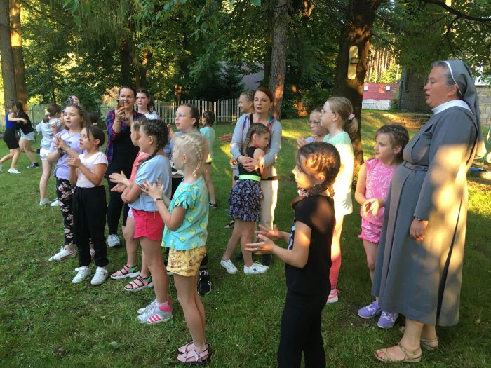 Był też czas na film, dyskotekę oraz gry i zabawę w ogrodzie. W czasie wypoczynku wakacyjnego dbałyśmy również o naszego ducha i formację liturgiczną. Każdy dzień rozpoczynał się i kończył modlitwą. Miałyśmy możliwość uczestniczenia w Eucharystiach, w czasie których odpowiadałyśmy za liturgię, brałyśmy też udział we Mszy świętej parafialnej w Rytrze.