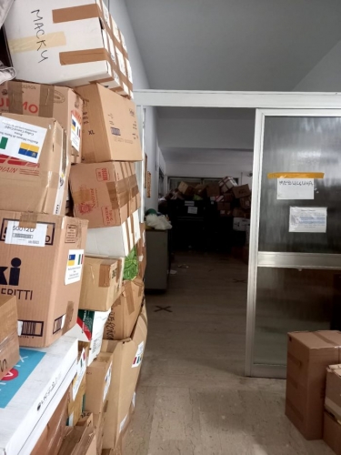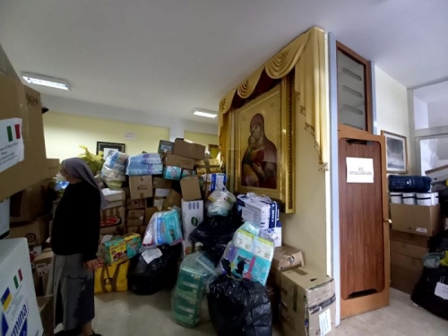 Zdjęcia poniżej zrobione były w Italii, gdzie nasze siostry - w tym s. Viktoria, nowicjuszka z Ukrainy - włączyły się w pakowanie darów przeznaczonych dla narodu ukraińskiego.