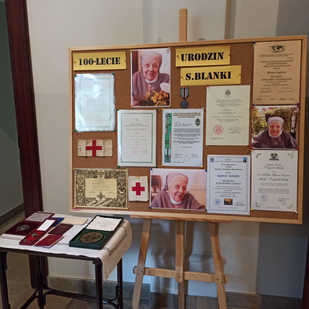 Tegoroczne wakacje dla wspólnoty w Poznaniu-Pokrzywnie zakończyły się wyjątkowym wydarzeniem. 31 sierpnia br. 100-lecie swoich urodzin świętowała nasza Siostra Blanka od Jezusa Hostii, porucznik Halina Sugiero – wychowanka poznańskiego Gimnazjum Dąbrówki, od ponad 70 lat Urszulanka Unii Rzymskiej, wieloletnia katechetka i troskliwa wychowawczyni, ale także sanitariuszka, czynna uczestniczka Kampanii Wrześniowej 1939 roku, Weteran Walk o Wolność i Niepodległość Ojczyzny, więziona w niemieckim obozie jenieckim w Gostyninie. A przy tym osoba pełna dobroci, pogody ducha, dowcipna i przyjazna siostra wszystkich, których spotykała i spotyka na swej drodze. Jej długie, piękne, choć naznaczone wieloma trudami, życie wielokrotnie było wskazywane jako wzór człowieczeństwa i patriotyzmu.