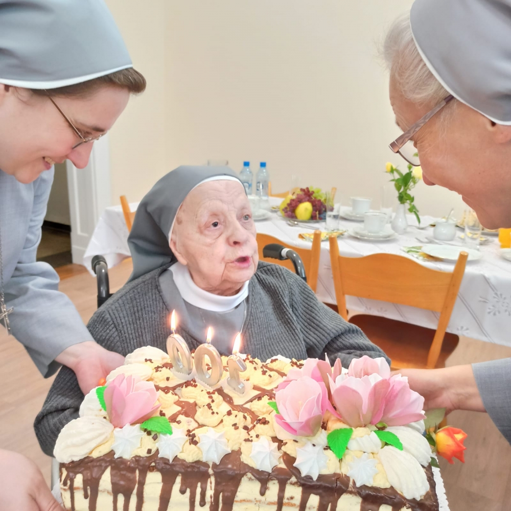 Setne urodziny Siostry Blanki, jak na tak zacny jubileusz przystało, obchodzone były w Pokrzywnie przez dwa dni. We wtorek, 30 września 2022 roku na Mszy św. dziękczynnej, a po niej przy jubileuszowym torcie, zebrała się przede wszystkim społeczność naszego Domu Pomocy Społecznej. Obecne były mieszkanki, siostry oraz obecne i byłe panie pracujące w naszym DPS, ale dojechały też przedstawicielki i dawne współpracowniczki Siostry ze Szkoły Podstawowej Nr 13 w Poznaniu. Natomiast we środę, 31 sierpnia, w dziękczynieniu i pełnym radości świętowaniu, osoba S. Blanki złączyła wokół siebie dwie siostrzane poznańskie wspólnoty urszulańskie: naszą pokrzywiańską oraz Siostry ze wspólnoty przy ul. Spornej, gdzie Jubilatka przeżyła równo 50 lat swego zakonnego życia.