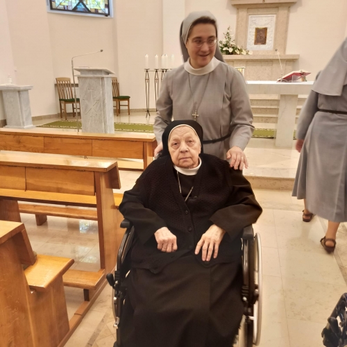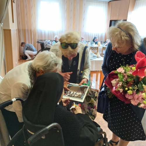 W przedsionku pokrzywiańskiej kaplicy przygotowana została ciekawa ekspozycja poświęcona osobie naszej Czcigodnej Jubilatki. W ten sposób chcemy razem z Siostrą dzielić się pięknem i bogactwem Jej stuletniego życia, dziękując za nie dobremu Bogu. Wśród naprawdę licznych powodów do wdzięczności jest także i to, że S. Blanka świętowała swoje setne urodziny w zdrowiu i radości serca, żartując raz po raz z gośćmi i siostrami.