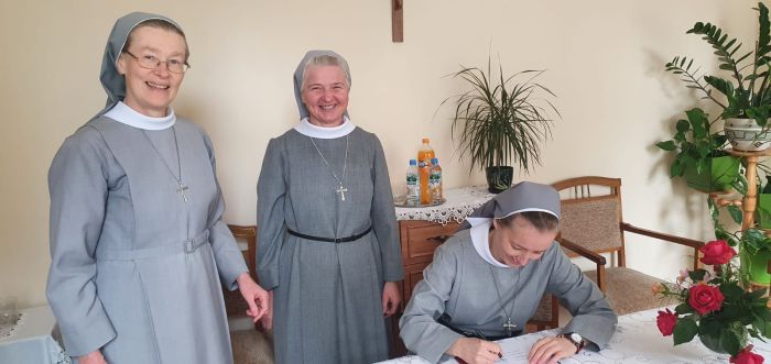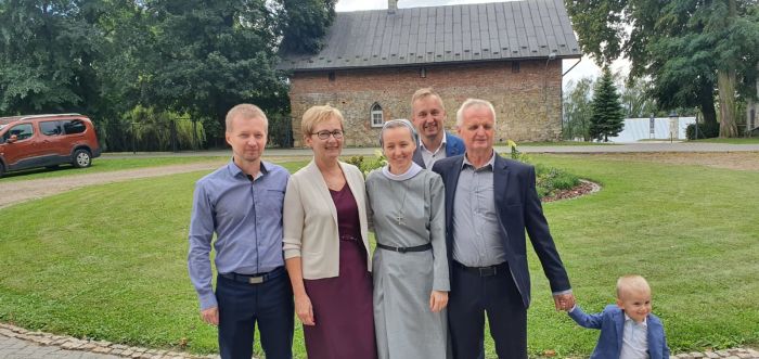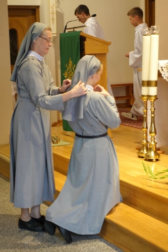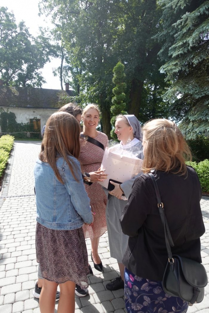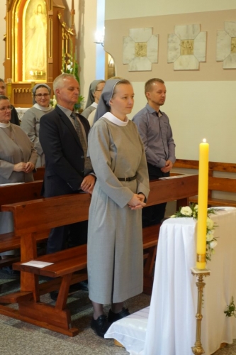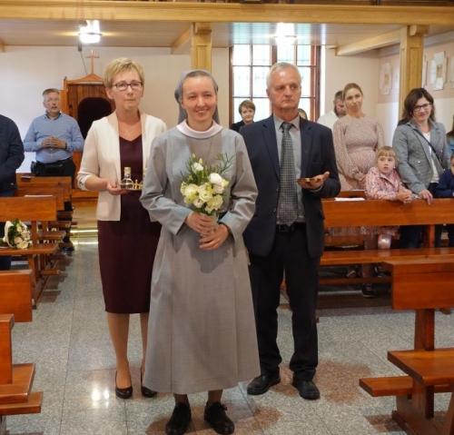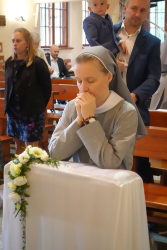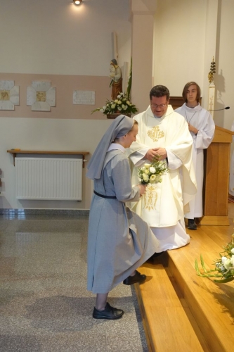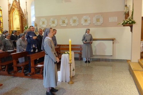 Uczyniła to w obecności trzech kapłanów, swoich rodziców i najbliższej rodziny oraz wspólnoty sierczańskiej powiększonej o siostry z Tarnowa i Krakowa. Na mszę się przybyły też osoby, które chciały być z Siostrą w tej ważnej dla niej chwili. Obecne były koleżanki z przedszkola, w którym wcześniej pracowała i panie z naszego przedszkola, w którym teraz pracuje. Było też kilkoro dzieci z rodzicami.