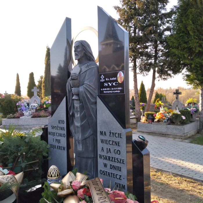 Ksiądz spoczął na cmentarzu parafialnym, w grobowcu przeznaczonym dla kapłanów. Jak się okazuje, była to ostatnia, można powiedzieć, opatrznościowa „inwestycja” Ks. Antoniego. Miesiąc wcześniej ukończono budowę grobowca, który usytuowany jest, zgodnie z jego - omawianym z nami – pragnieniem,
