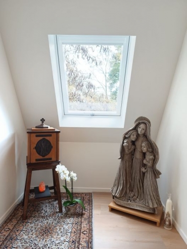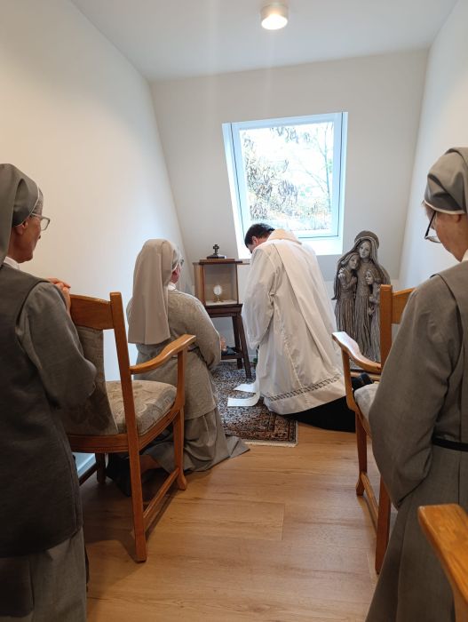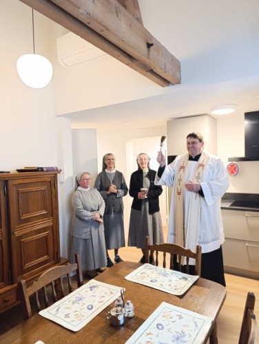 Nasze małe mieszkanie znajduje się w części klasztoru należącego do tutejszego Zgromadzenia Córek Maryi i Józefa. Stopniowo, przy pomocy naszych sióstr i sióstr u których wynajmujemy nasze lokum, udało nam się je umeblować. Najtrudniej przychodziło nam znalezienie do naszej małej kaplicy odpowiedniego tabernakulum. Na szczęście udało nam się je znaleźć przed przyjazdem s. Iwony Skorupy, naszej prowincjalnej. Dzięki temu, 16 października, mogłyśmy poprosić ks. Vincenta Bom, proboszcza naszej parafii, by przyniósł Najświętszy Sakrament i poświęcił nasz dom.