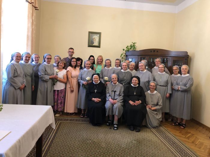 Po adoracji Najświętszego Sakramentu połączonej z koronką do Bożego Miłosierdzia przyszedł czas na podzielenie się historią powołania Sióstr – najpierw przez obejrzenie zdjęć, a potem przez osobistą opowieść o rozpoznawaniu Bożego wezwania i wstąpieniu do zakonu każdej z Jubilatek.