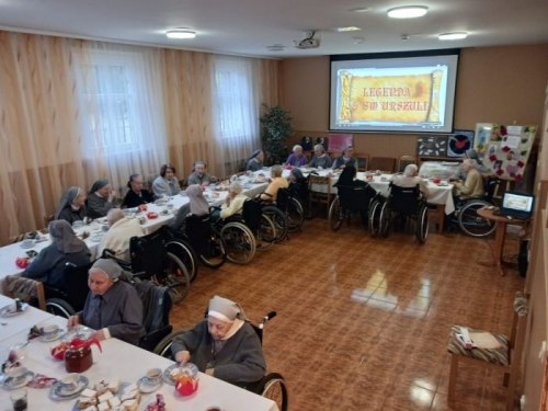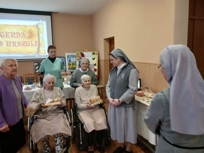 Centrum tego dnia jest liturgia: Msza Święta w intencji urszulańskich dzieł apostolskich i osób, które Bóg powierza naszej opiece oraz modlitwa brewiarzowa. A podczas obiadu jesteśmy RAZEM , wszystkie Siostry, które tylko mogą przyjść lub… przyjechać (na wózku). I jest to dla nas wszystkich bardzo, ważny wymiar naszego świętowania. Dzieje się dużo: po południu gościmy trzech kapłanów oraz dwoje młodych ludzi z Bydgoszczy. Przyjechali po Siostry Satyaseva: S. Vinayę i S. Gratię, które przez ostatni czas były z nami. Potem jeszcze rekreacja w łączności z naszymi Siostrami w Senegalu, które dziś właśnie świętują 60 lat swego pobytu w tym kraju, wspólny Różaniec, bo tyle mamy ważnych intencji…, kolacja i ostatnie przygotowania do niedzieli… Soli Deo gloria!