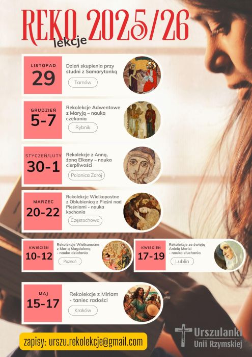 Zapisy: urszu.rekolekcje@gmail.com