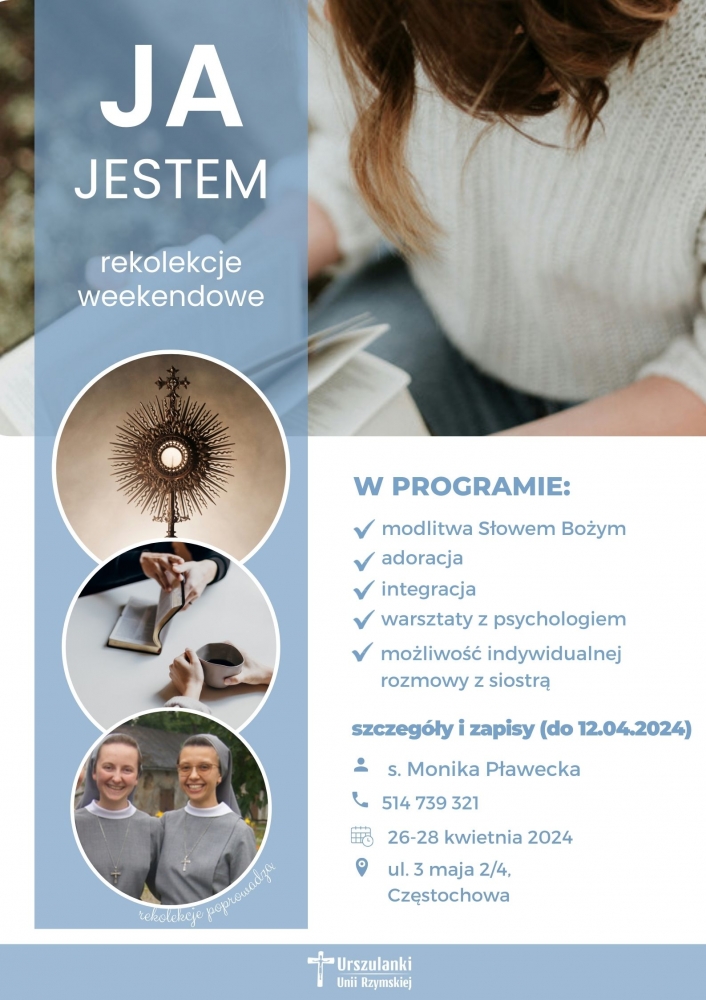 „Kim jesteś Ty, Panie, a kim jestem ja?” Podobno św. Franciszek często modlił się tymi słowami, a my chcemy zatrzymać się nad nimi w ostatni weekend kwietnia. Zapraszamy na weekendowe skupienie do Sióstr Urszulanek UR w Częstochowie, które odbędzie się w dniach 26-28 kwietnia 2024.