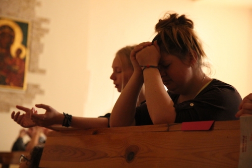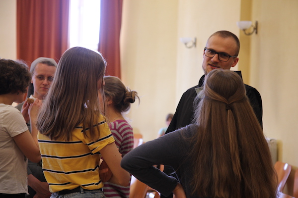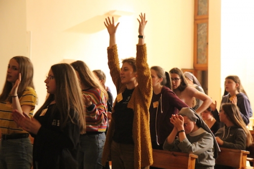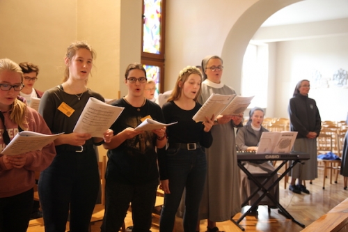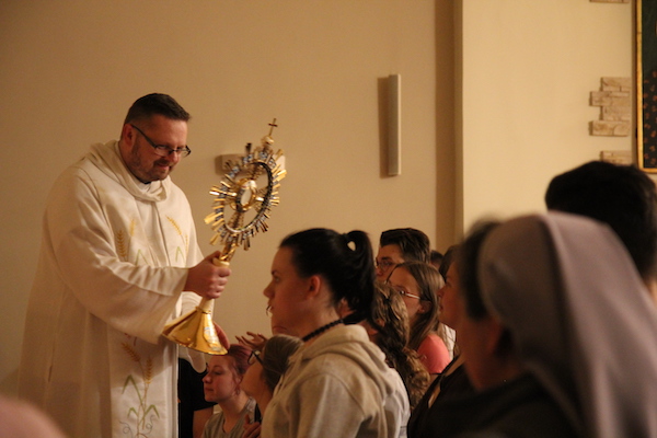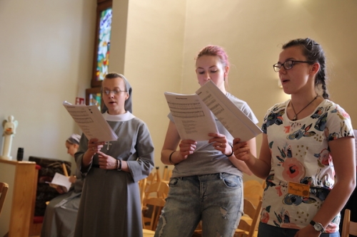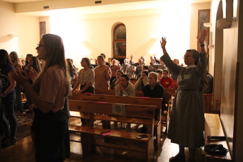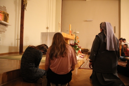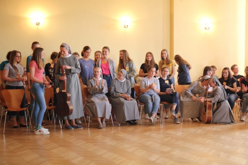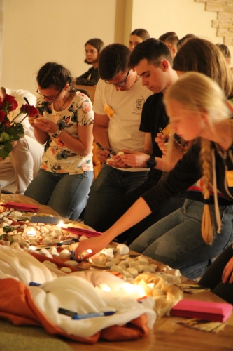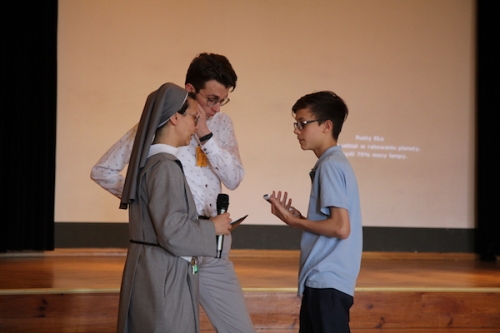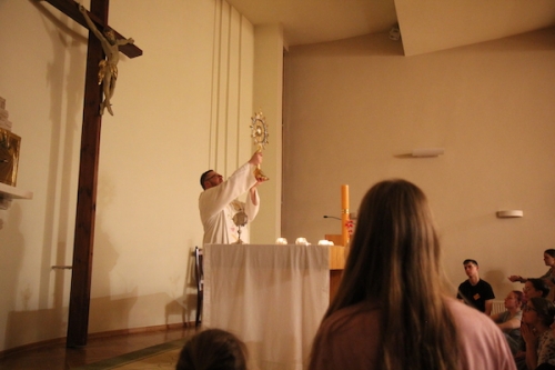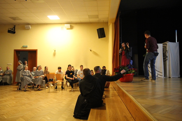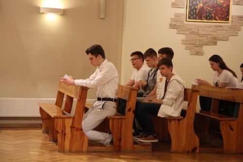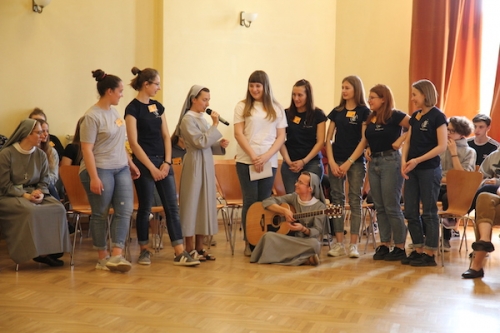 Po krótkiej integracji i niezbędnych ogłoszeniach, wspólnie uczestniczyliśmy we Mszy Świętej. Ks. Rafał w czasie homilii podzielił się swoim doświadczeniem Bożej Miłości, a także podkreślał, że miłość nie może istnieć bez wyzwalającej nas prawdy. Świetnym dopełnieniem Bożego Słowa usłyszanego podczas Eucharystii była pantomima przygotowana przez Siostry Juniorystki. Ukazywała ona istotę Bożej Miłości, która zawsze czeka na człowieka i chce mu się bezgranicznie dawać.