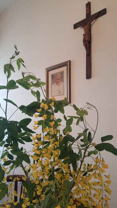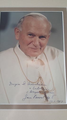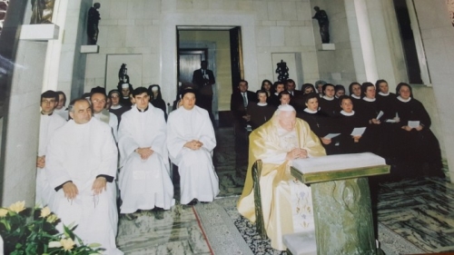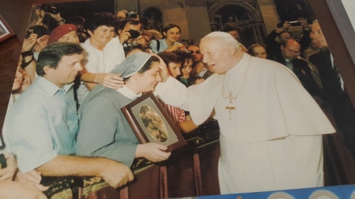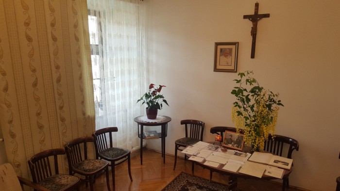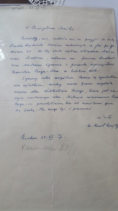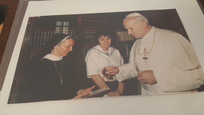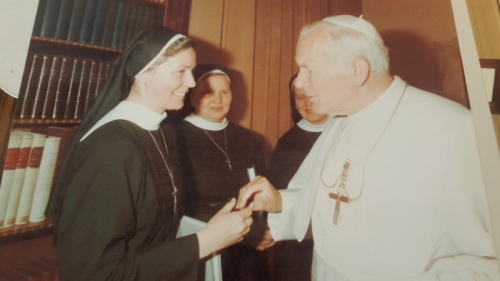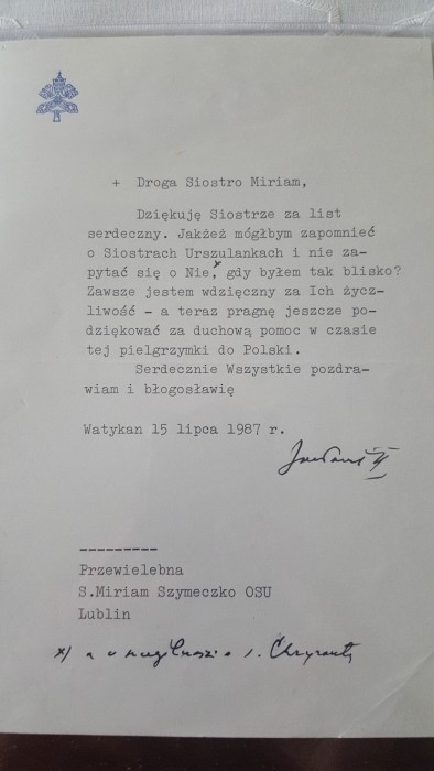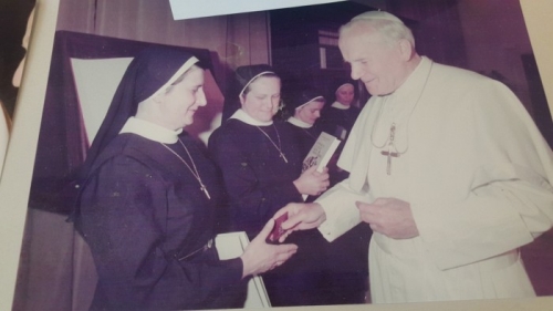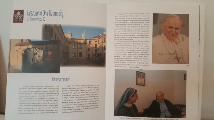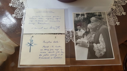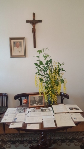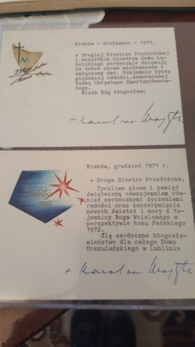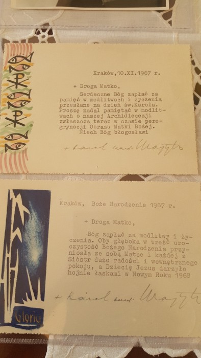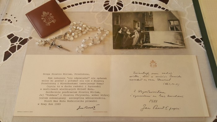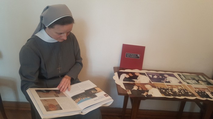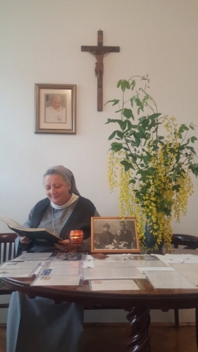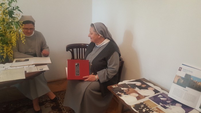 Również w klasztorze lubelskim przygotowano wystawę upamiętniającą obecność Ojca św. jeszcze jako Biskupa i Kardynała. W tzw. „Pokoju Papieskim” można przeczytać własnoręcznie pisane przez Niego listy, życzenia świąteczne, różańce, okolicznościowe znaczki i zdjęcia ukazujące niezapomniane spotkania sióstr wspólnoty lubelskiej z przyszłym Świętym. W dniu wyboru na Stolicę Piotrową pod datą 16 października 1978 roku kronikarka zanotowała: „Podczas kolacji rozmawiałyśmy o konklawe. O 19.00 otworzyłyśmy telewizor. Jako pierwszą wiadomość podano wyniki wyborów nowego Papieża. Kiedy usłyszałyśmy Kardynał Karol Wojtyła, wszystkie spontanicznie wstałyśmy i biłyśmy brawo. To był wybuch radości! W tym czasie w naszym domu trwało spotkanie historyków KUL. Razem z nimi zgromadziłyśmy się w kaplicy, w której często odprawiał Mszę św., by odśpiewać uroczyście „Te Deum”. Także dzisiaj, w setną rocznicę jego urodzin, z całym Kościołem śpiewamy - Ciebie Boga wysławiamy za Wielkiego Człowieka, Papieża i Polaka.