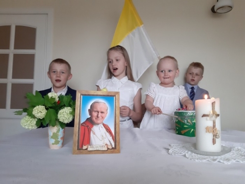 Setna rocznica urodzin - to był piękny dzień. Wiele dziękczynnych Mszy świętych, transmisje telewizyjne i radiowe, pamiątkowe medale, znaczki i wystawy upamiętniające Wielkiego Polaka. Do wspólnego dziękczynienia dołączyły się dzieci z naszej szkoły lubelskiej. W domach rodzinnych powstały „Papieskie ołtarzyki”, przy których dzieci ze swymi rodzinami dziękowały za Papieża z Polski. Pierwszoklasiści wykonali papieskie chorągiewki. Niektórzy uczniowie przygotowali koncerty, w czasie których nie zabrakło śpiewu ulubionej piosenki Papieża - „Barki”.