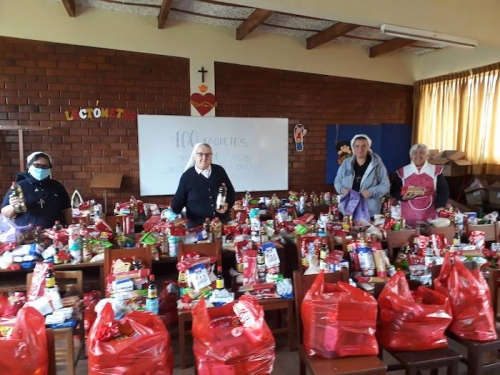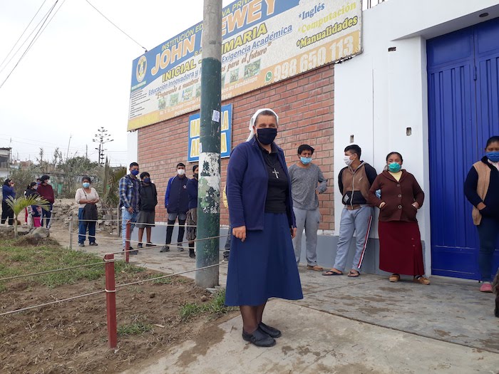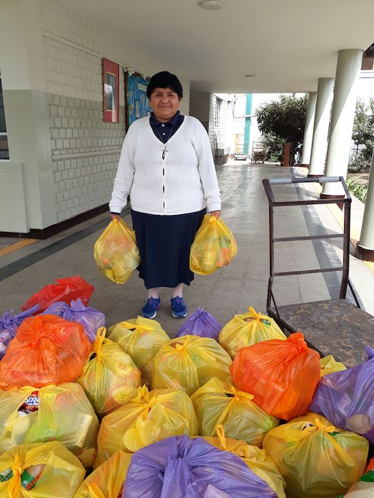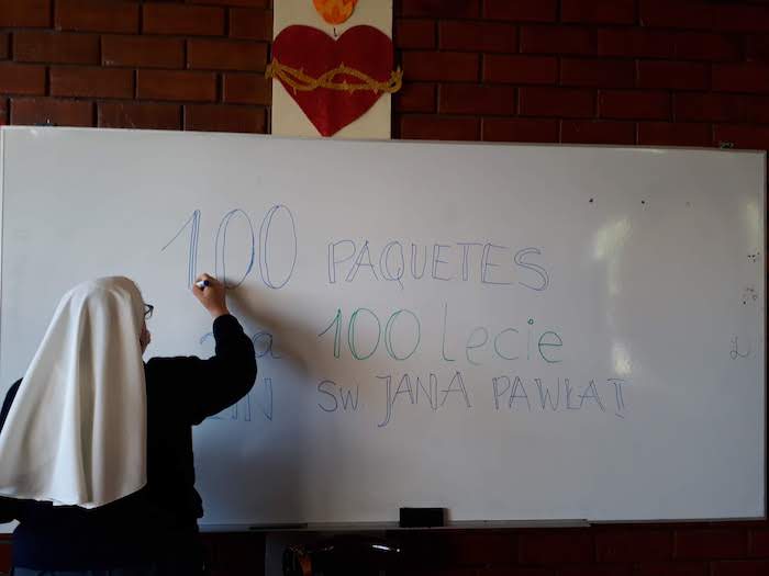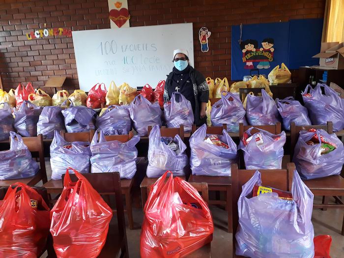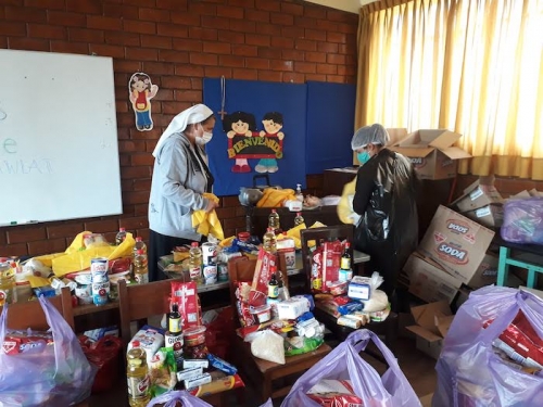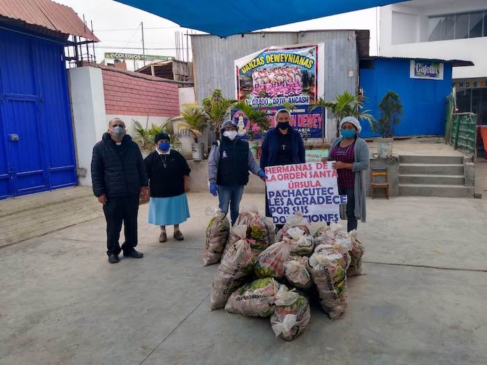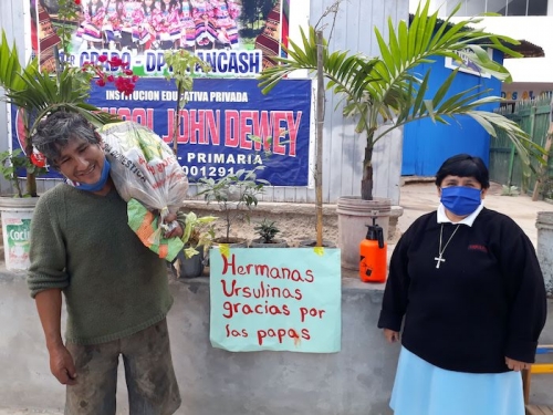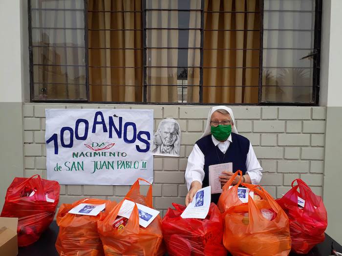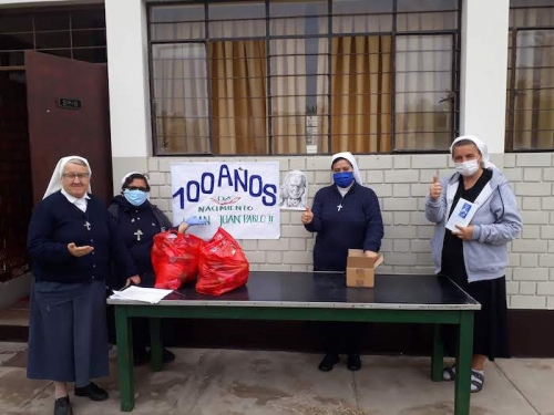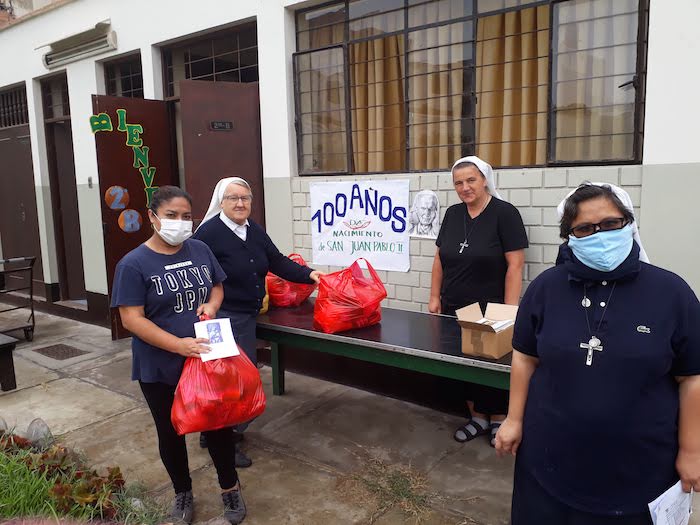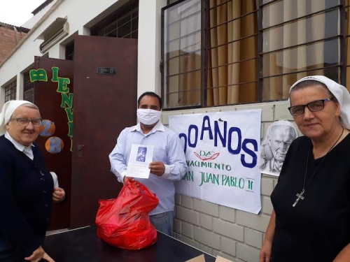 Wspólnota Sióstr Urszulanek prowadzi w dzielnicy San Miguel bezpłatną szkołę dla ubogich. Staramy się, mimo nakazu zachowania dystansu, pomagać wielu ubogim z naszej szkoły oraz w naszej misji w Pachacutek. Pierwszą akcją było przygotowanie paczek z żywnością dla 30 najbardziej potrzebujących rodzin z Pachacutek. Zaraz potem, aby uczcić 100.urodziny Jana Pawła II, przygotowałyśmy 100 paczek żywności dla 100 ubogich rodzin z naszej szkoły.