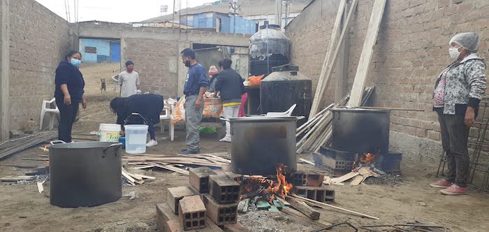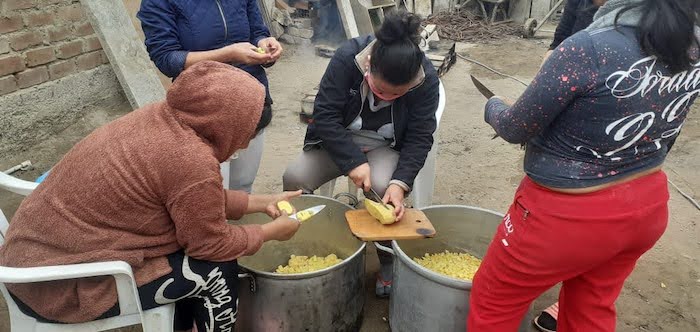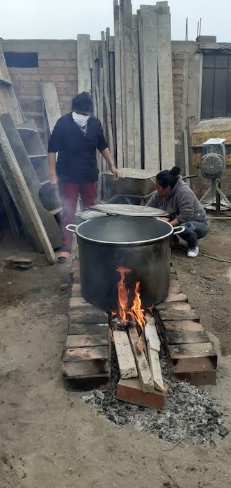 W czasie kontaktu z ludźmi w Pachacutek, dowiedziałyśmy się o organizowaniu tzw. wspólnego garnka. Polega on na tym, że każdy przynosi do jednego miejsca żywność i z niej przygotowuje się posiłek dla wszystkich, tak aby ci, który nic nie mają , także mogli coś zjeść. W jednym z miejsc, gdzie zostawiłyśmy kilka worków ziemniaków, przygotowywany jest posiłek na 250 osób.