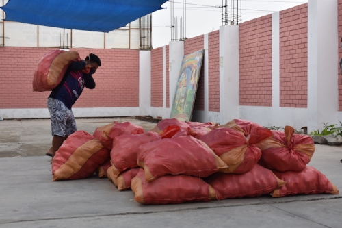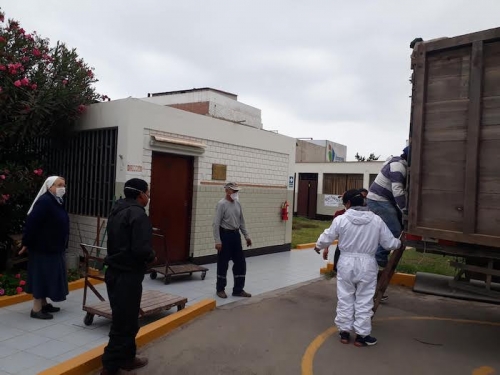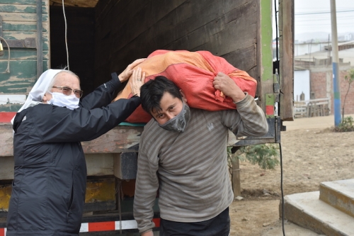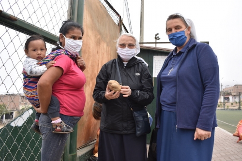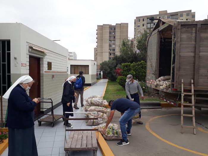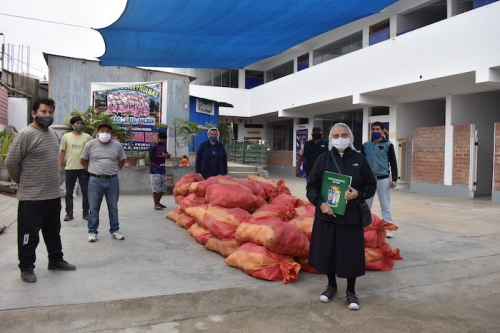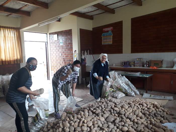 Z dalekiego regionu Peru, dzięki darczyńcom i zaangażowaniu s.Eriki, zostały tez sprowadzone dwie ciężarówki z ziemniakami. Każda z nich zawierała 7 ton ziemniaków, które mogłyśmy podarować ludziom w ubogiej parafii w Limie oraz niektórym rodzinom z naszej szkoły. W większości ta pomoc została udzielona na naszej misji w Pachacutek. Akcja z kartofelkami przyniosła podwójne dobro, bo ziemniaki były kupione od drobnych rolników z bardzo biednego rejonu Peru, gdzie rolnicy mają problem ze sprzedaniem swoich produktów. Dzięki naszej pomocy mogli sprzedać swoje produkty po godziwej cenie.