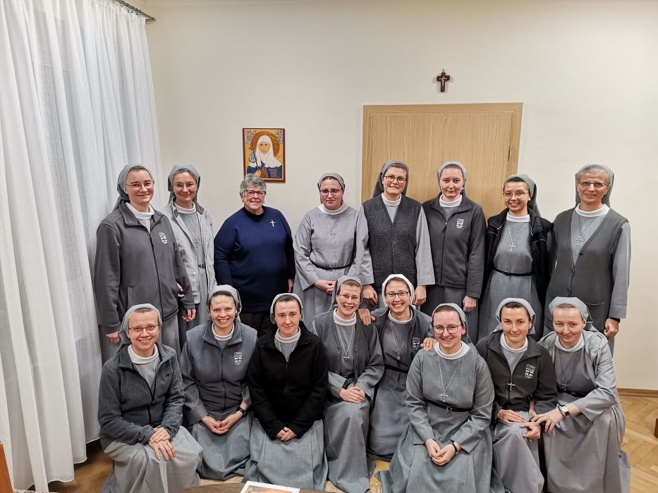 W piątkowy wieczór, 25.11.2022., nasz warszawski klasztor wypełnił się gośćmi po brzegi. Do domu prowincjalnego zawitało 12 najmłodszych stażem sióstr z naszej prowincji (I profesja złożona w latach 2009-2022), które przyjechały na specjalne spotkanie z naszą przełożoną generalną, sr. Susan Flood. Trudno było o lepszą datę, wszak 25 listopada świętowałyśmy 487. rocznicę założenia Towarzystwa św. Urszuli, wspominając moment, gdy grupa młodych kobiet pragnących naśladować Jezusa w sposób, w jaki czyniła to św. Aniela, stworzyło zalążek rozrastającej się przez wieki rodziny urszulańskiej.