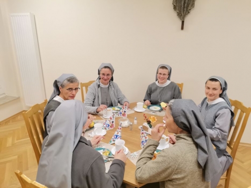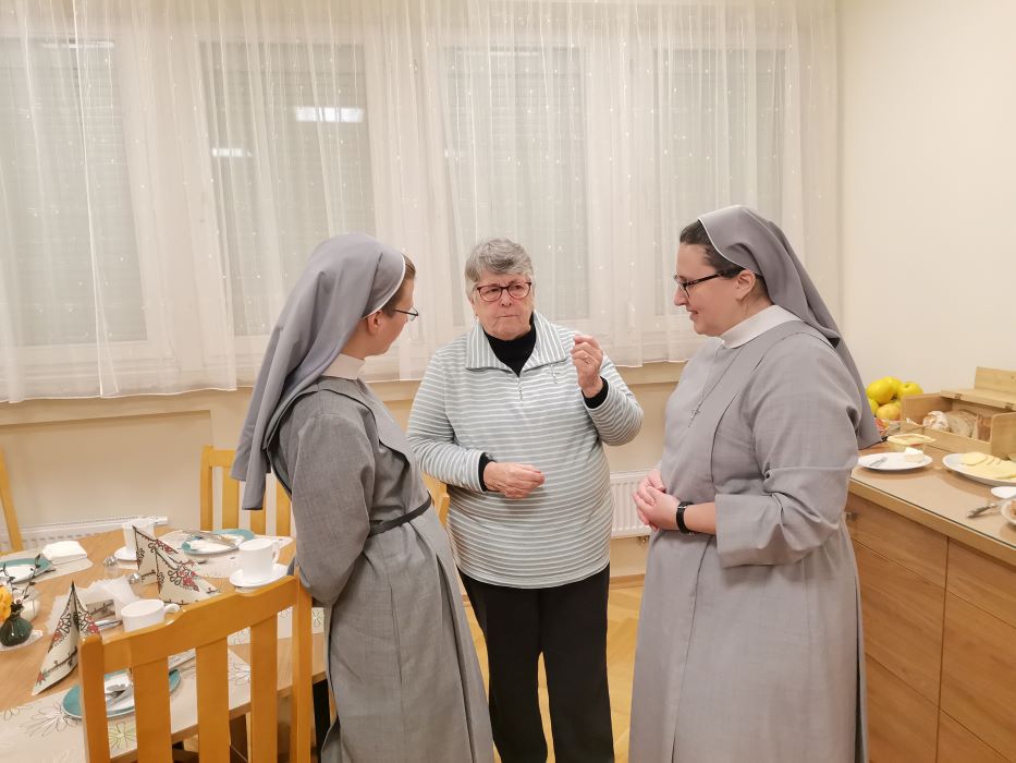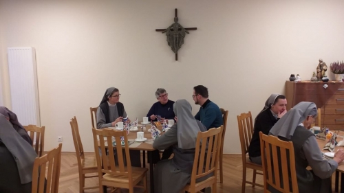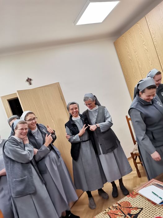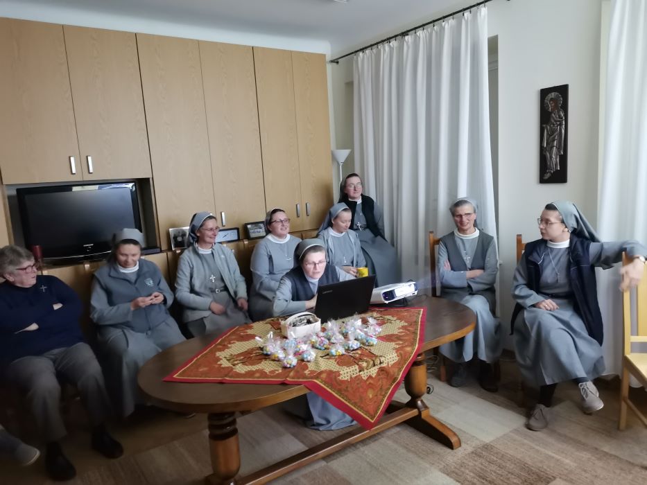 Całą wspólnie spędzoną sobotę poświęciłyśmy spotkaniom. Ich celem było przede wszystkim dzielenie się ważnymi dla nas kwestiami dotyczącymi naszych wspólnot, zaangażowania apostolskiego i całej prowincji. Oprócz Przełożonej Generalnej w spotkaniu towarzyszyła nam także s. Benigna Kania z ramienia rady generalnej oraz s. Iwona Skorupa – przełożona prowincjalna. Słuchanie siebie nawzajem pomogło nam z pewnością uaktualnić swój obraz życia prowincji i skonfrontować się na nowo z naszą różnorodnością, a także wieloma bieżącymi wyzwaniami obecnego czasu. Całość naszych spotkań rozpoczęłyśmy rano Eucharystią, a wieczorem domknęłyśmy wspólną modlitwą, wchodząc poprzez nią w otwierający się przed wszystkimi okres adwentu. W ciągu tego krótkiego wspólnego weekendu nie zabrakło nam także okazji do śmiechu i zabawy, jak choćby podczas wieczornej rekreacji, gdzie szczególnie pamiętałyśmy także o siostrach juniorystkach, którym patronuje wspominany 26 listopada św. Jan Berchmans SJ. W tej części naszego programu wzięła także udział nasza nowicjuszka, s. Wiktoria.