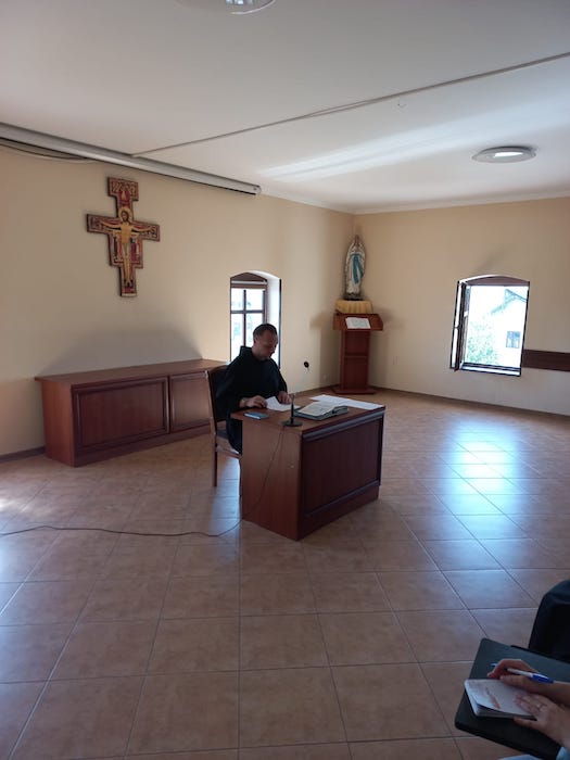 Nasze trzy siostry Ukrainki - Tetiana, Lubov i Oksana - w dniach 18 - 26.07.2022 , uczestniczyły w ośmiodniowych rekolekcjach prowadzonych przez o. Stanisława Nuckowskiego, franciszkanina w Bilszowcach kolo Halicza. Były one zorganizowane dla 29 sióstr z różnych zgromadzeń zakonnych dwóch obrządków - rzymsko i greko katolickich.