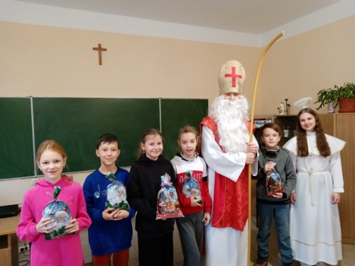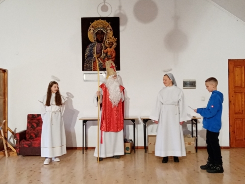 W sobotę 3 grudnia do dzieci szkolnych podczas zajęć z katechezy przyszedł św. Mikołaj, natomiast do przedszkolaków – po głównej Mszy św. w niedzielę. Jeden z aniołków niespodziewanie się rozchorował, więc s. Olena musiała ratować sytuację J Ale wszystko się udało. Dziękujemy wszystkim ofiarodawcom, dzięki którym mogliśmy zorganizować to święto w tak niełatwym czasie. Dziękujemy również za każdą pomoc i modlitwę wszystkim, którzy nas wspierają.