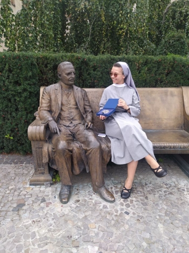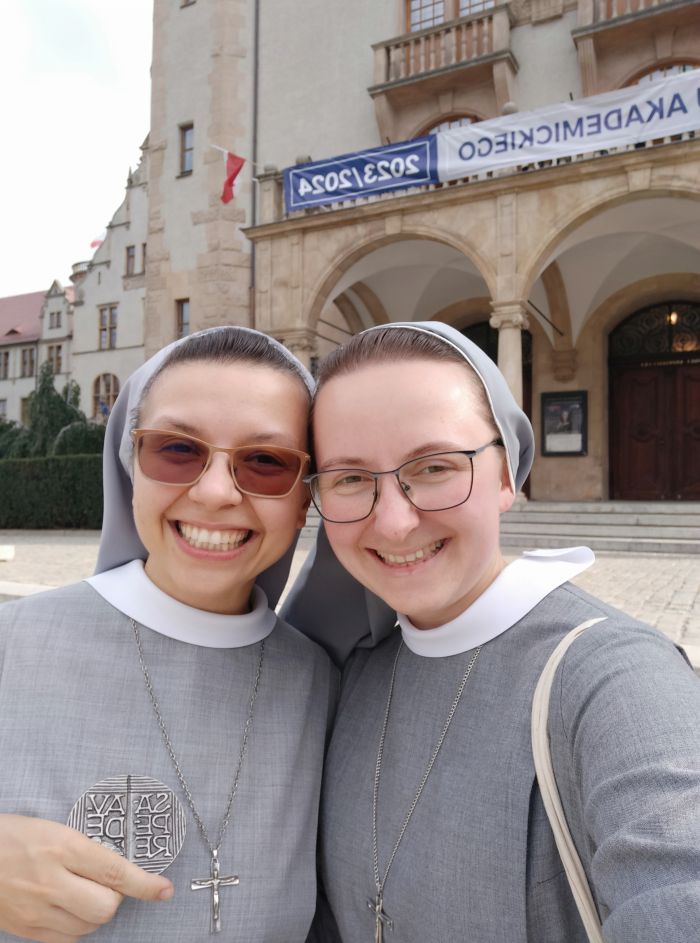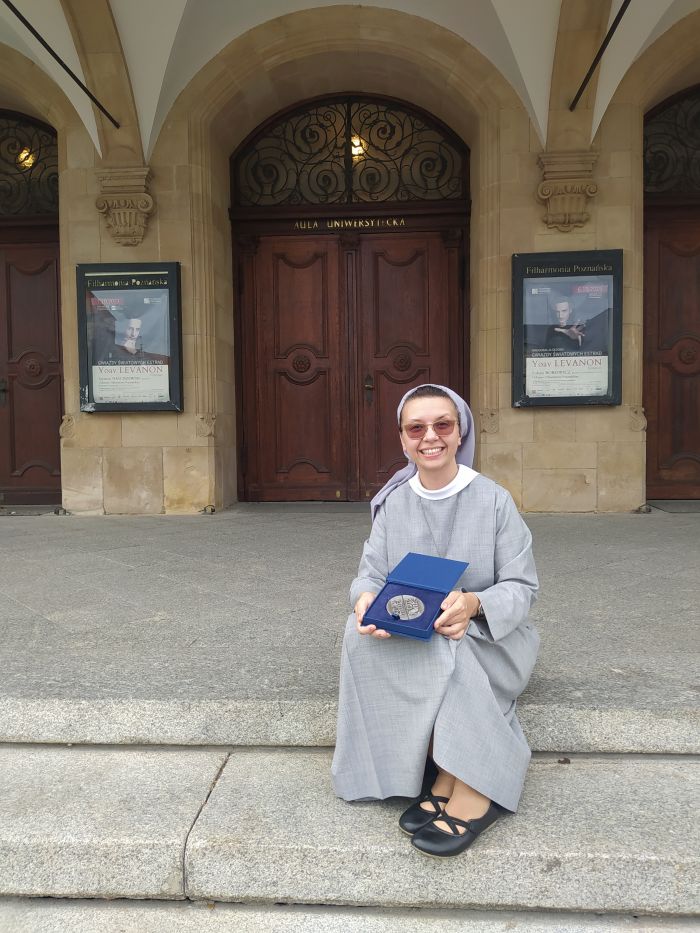 2 października 2023. Podczas uroczystej inauguracji roku akademickiego na Uniwersytecie Adama Mickiewicza w Poznaniu nasza siostra, Anna Kalecińska, odebrała z rąk Pani Rektor Bogumiły Kaniewskiej medal Sapere Aude przyznawany co roku wybitnym absolwentom za ich wyniki w nauce i zaangażowanie w życie uniwersyteckie. S. Anna w lipcu br. obroniła na Wydziale Teologicznym UAM w Poznaniu z wyróżnieniem pracę magisterską zatytułowaną Chrześcijańska wizja śmierci u Karla Rahnera.