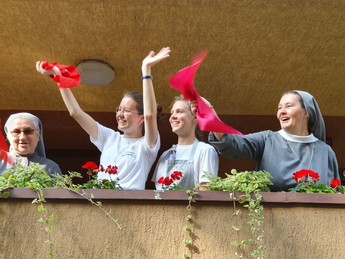 Dziewczyny wniosły w naszą codzienność entuzjazm, młodzieńczość i oczywiście radość. Był to czas wspólnej pracy, ale też modlitwy, rozmów i miłych spotkań. Do dziewczyn dołączyli również chłopcy - koledzy z klasy, którzy pomagali siostrom w uporządkowaniu domu po wyjeździe pątników. To było prawdziwe urszulańskie SERVIAM! Liceum we Wrocławiu może być dumne, że ma tak wspaniałą młodzież!