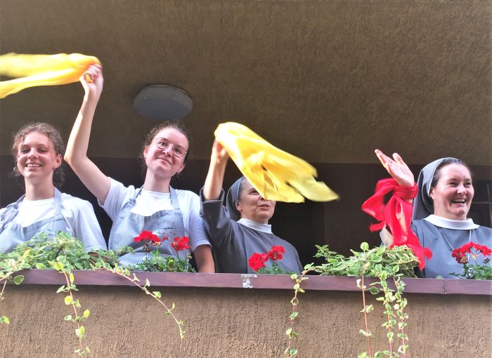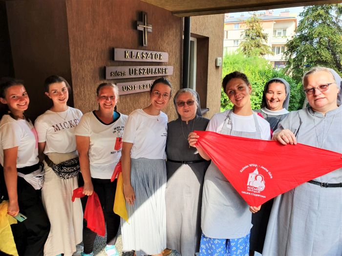 Wszystko zaczęło się od rekolekcji weekendowych w Częstochowie… Grupa młodzieży z Liceum Urszulanek we Wrocławiu, która uczestniczyła w ciągu roku w cyklu spotkań rekolekcyjnych: „Pocovidowe Pogotowie Duchowe”, przyjechała również w wakacje do sióstr, aby pomóc w przyjmowaniu pielgrzymów, zmierzających na Jasna Górę. Był to prawdziwy wolontariat w duchu SERVIAM i wielka radość, zarówno dla sióstr jak i młodzieży!